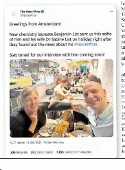 Benjamin list ehefrau. Wie überraschend zeigt die Reaktion der beiden. MacMillan kam für die beiden Preisträger völlig überraschend.